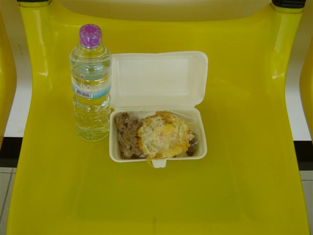0577. ข้าว + หมูทอดกระเทียมพริกไทย + ไข่ดาว + น้ำพริกน้ำปลา + น้ำ 1 ขวด