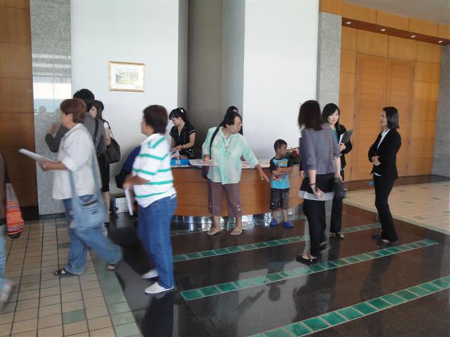 2748. บางท่านกำลังลงทะเบียน ส่วนใหญ่นั่งอยู่ในห้องสัมมนา