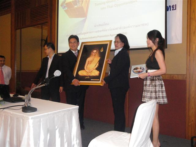 2926.ประธานหอการค้าจังหวัดเชียงใหม่ รับของที่ระลึกจาก ม.ร.ว. นงคราญ ขมพูนุท แห่ง SiPA
