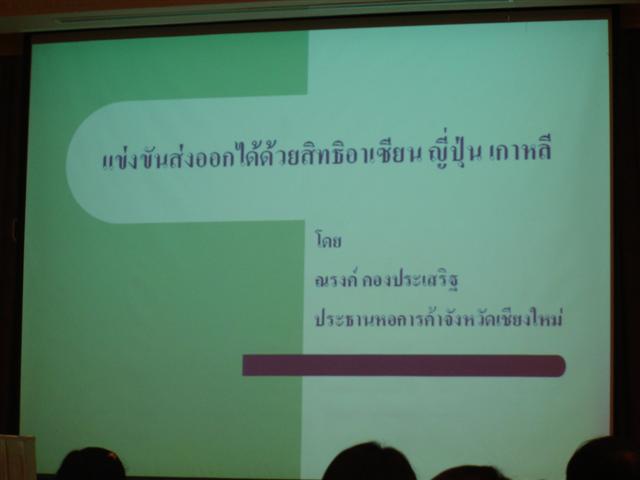 :การสัมมนาเรื่อง แข่งขันส่งออกได้ด้วยสิทธิ:อาเซียน-ญี่ปุ่นและเกาหลี
